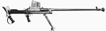 The Boys was the only anti-tank rifle to serve with the British Army. It was designed in the mid 1930's when this type of weapon was popular everywhere. It used a bolt action feeding from a top mounted magazine and it all its parts were robust and heavy, but it did weight 36lb (16.5 kg) which was substantial load for one man to carry.